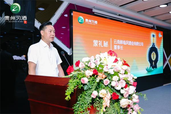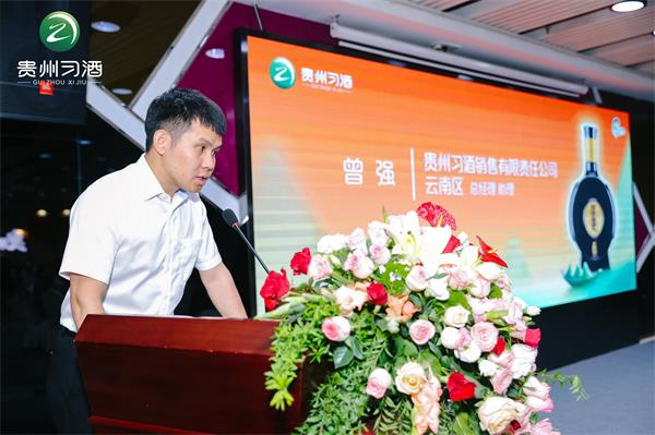 贵州习洒销售有限责任公司云南区总经理助理曾强在会上致辞:习酒公司从1952年建厂至今,已经走过了72年的发展历程。72年来,习酒公司始终秉承匠心匠德,坚守“发展、生态、安全、质量”四条底线,以传统古法酿造工艺,酿造出醇香优雅的高品质白酒。同时,也积淀了“崇道、务本、敬商、爱人”的核心价值观和“知敬畏,懂感恩,行谦让,怀怜悯”的君品品格。