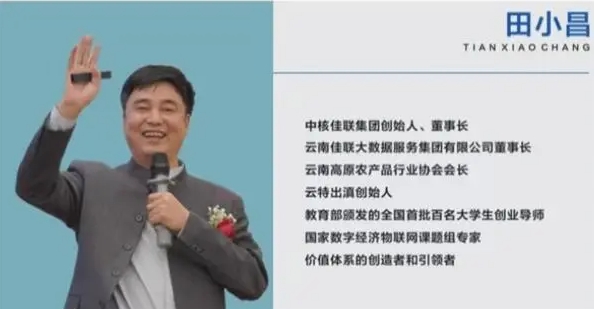 云南佳联大数据服务集团有限公司董事长田小昌、在大会上慷慨激昂的讲解未来三大趋势:趋势一:从权力中心转化为服务中心;趋势二:从货币时代走向价值时代;现代商业与易业的区别:商业以价格利润为导向,变革后的易业一以解决问题为导向,从货币体系走向价值体系。趋势三:人类将从经济单体走向经济共同体。