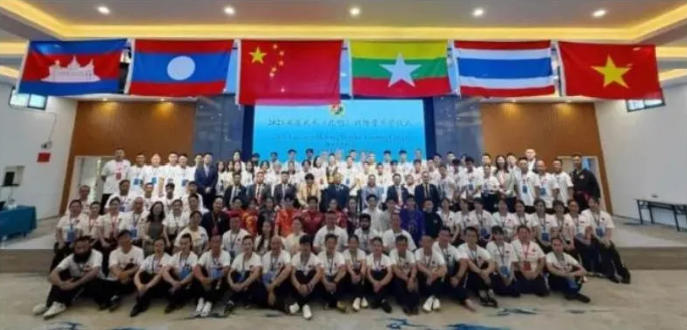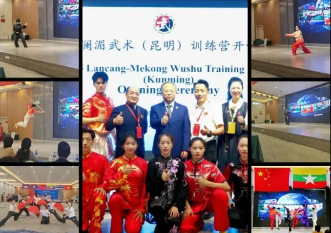(记者 邵艳彬 通讯员 胡宝林)7月17日上午9时,澜湄武术训练营开营仪式在昆明大 自然风情园宴会大厅隆重举行。来自中国、柬埔寨、老挝、 缅甸、泰国、越南六国的100余名武术运动员、教练员,与 泰国驻昆总领馆领事副总领事苏拉迪,越南驻昆总领馆总领 事陈廷元、缅甸驻昆总领馆领事良享萌、柬埔寨驻昆总领馆 领事司立安、老挝驻昆总领馆领事孔法占 · 展达翁、国家体 育总局武术运动管理中心副主任申振刚、云南省体育局副局 长张云龙、云南省外办一级巡视员王伟、云南省武术协会主 席胡宝林等领导嘉宾齐聚一堂,在秀丽的滇池之滨,以武会 友,共谱澜湄合作新篇章。