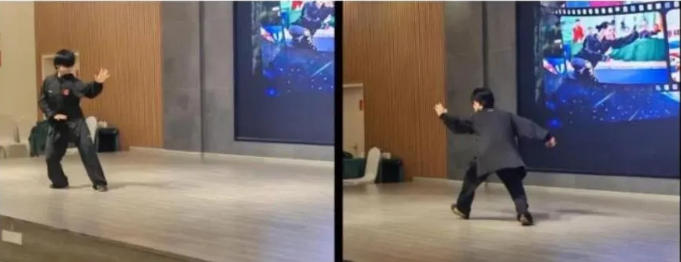 教员代表、世界冠军段媛1分钟形意拳示范,刚劲迅猛, 尽显“半步崩拳打天下”的精髓。