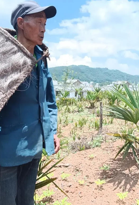 据介绍,近五年来,老兵吴仕平致力于推广腾冲甜棕种植,自己种植127亩十万余棵,育苗一千多万株。腾冲甜棕因其生长周期短,棕头、棕苞米粗纤维含量低,品质细腻且回甘味好,是食药两用山珍,菜市场供不应求,种植的农民日见增多。