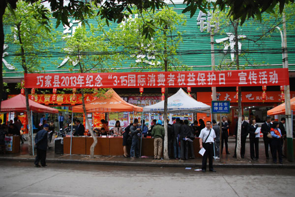 313,巧家县工商局在巧家县天力超市旁组织开展2013年纪念“3·15国际消费者权益保护日”宣传活动。
