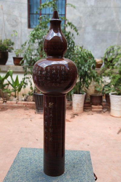 记者利用端午节与中国书法家协会会员书法家燕金发、云南斑铜雕塑艺术大家汪金鹏等驱车来到历史文化名城建水,直接走进了“笛龙陶艺”工作室以及“笛龙陶艺”展览销售部,让我们看到的是各式各样的获奖证书及获奖建水紫陶品。在生产工作室观看了整个工艺复杂流程,并亲自书画紫陶制品,范成雄及周冬英经理介绍:建水紫陶历史悠久,深厚的文化内涵以及独特的制作工艺,与江苏的宜兴陶、广西的钦州陶、四川的荣昌陶并称为中国四大名陶,建水紫陶具有亮如镜、质如铁、音如磐、洁如玉的特点。随着社会经济的发展,人们生活水平的提高,人们追求生活品质的提高,营造收藏文化,提高收藏意识,艺术品市场走向活跃,云南艺术品市场逐渐的成熟,越来越多的人了解建水紫陶,并喜欢建水紫陶。建水紫陶的消费群逐渐地由省内转向省外,甚至是国外。