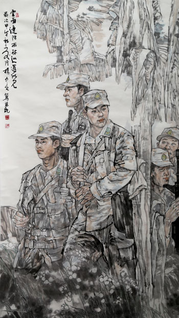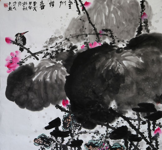 杨中文1971年生于河南宁陵,1991年毕业于郑州黄河美术学校,1998年参加解放军艺术学院文化管理专业学习,2006年参加中国书法家协会培训中心学习,2009年参加中国艺术研究院脱产深造1年,2012年他还参加了全军美术书法创作班培训。25年前他远离家乡从中原大地来到云南,把所有的精力和才华都融入到了边疆的经济建设和边防稳定。在工作之余,他从来没有忘记自己的所爱与嗜好。无论在任何况境下,都始终对民族艺术的传承创新和时代发展抱以坚定的信念,以满腔的热情、乐观豁达的人生态度勤奋耕耘,使花鸟画在精神内涵和笔墨样式上都成功地实现了从传统到现代的转换。他深知中国花鸟画需要诗、书、画全面修养的支撑,其书法长期攻研碑体铭文,并参合了各家书风,在隶篆和行草上既见传统,又见性格,书风豪迈沉雄,气势纵横驰骋,结体巧拙相济,笔线遒劲有力,书画金石相得益彰,合为整体精神。他对中国写意花鸟最大的感觉是一改传统写意文人画温文儒雅的气质,而代之以豪放性风格和雄强的时代特征。他信守“师造化”的传统,对生活充满挚爱,在取材上得益于对花鸟自然生命的感悟,主题鲜明,主体突出,在布局构图上取势大胆,注重心裁,作品具有鲜明的现代面貌。在艺术语言和笔墨探索之中,他形成了十分深厚的笔墨经验,情感驱笔,笔线恣意,逸趣遣兴,变幻无穷,展现出独特的笔墨造诣。