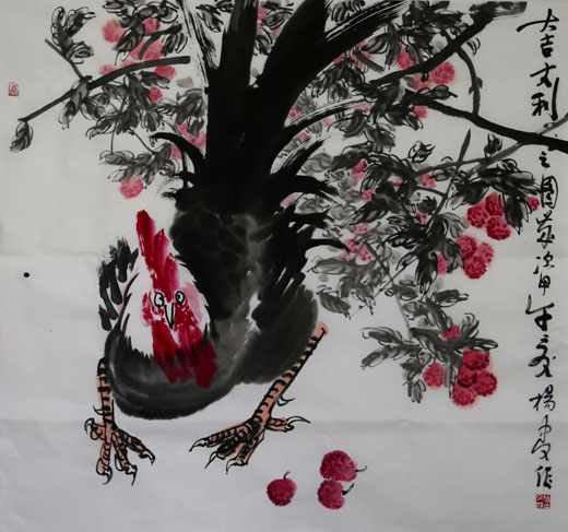 杨中文的画风,看似粗疏的随意挥洒,实则处处深藏,苦心经营。哪怕一笔一画,都包含着深邃的立意、丰厚的含蕴,因此他的作品品位很高。他善于运笔用墨,尤其在运用墨色处理虚实关系,营造枯润相生、老辣生动的艺术境界上,更有独到之处。他说:“画虚处犹如音乐中的低音,音低尤重,最见工夫。”所以他的画笔墨淋漓,气韵生动。他认为学习中国画,继承传统固然重要,但更重要的是创新,而要创新则必须注意三点:一是要有生活。没有生活,任何创新都成了无源之水,无本之木;二是要有工夫。即所谓艺术技巧与方法,非一朝一夕所能掌握,要勤学苦练,方可有成,所谓“天道酬勤”就是这个道理;三是要有传统文化的博大涵养。这就要多读书,多揣摩前人的作品,深入理解所画的题材和内涵。