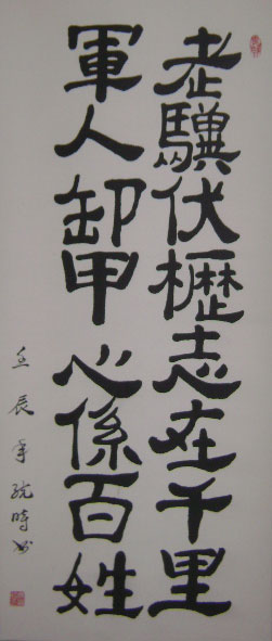 时隔十多年,我再次和杨统时见面是在他退休之后自己开办的昆明园博花鸟市场的热海画廊,如今他已实现了从记者到书法家的华丽转身。