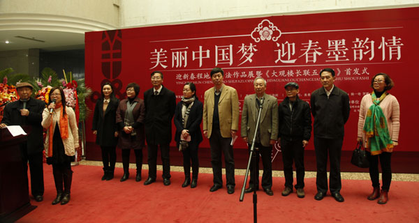 22,“美丽中国梦、迎春墨韵情”迎新春程地超书法作品展暨《大观楼长联五体书》首发式在省图书馆举行,此次活动由昆明市文学艺术界联合会主办,云南省图书馆、云南民族文化交流中心、昆明玉云翔文化传播有限公司,昆明真庆文化旅游开发经营有限公司承办,展期将持续到29