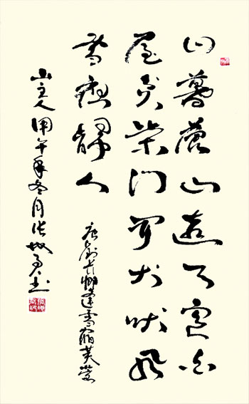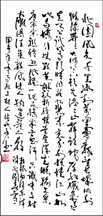 在张地君的书法作品中,也体现出了他独特的魅力。他擅长于写草书,特别是章草,可算是他的一绝,因为能够写章草的人少之又少。大家都知道,写章草的要求非常高,章草落笔带刀,虽然是草书,却不连接,独立成字,要写好很难,张地君经过刻苦练习,攻下了一个个难关,目前,他的草书、行草、章草都写得日臻大家,每幅字都写得流畅到位、挥洒自如、气势磅礴、刚劲有力,在书法界有较高知名度。