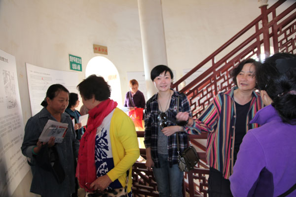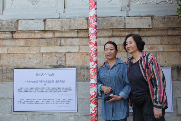 315上午,侨居芬兰的中国艺术家张日月在昙华寺公园瑞应塔三、四层展出作品80余幅,参展作品利用天干地支汉字编码组合标注昙华寺瑞应塔内的180阶梯旋转楼梯,将螺旋上升的具体三维实体结构,与不断重复的60甲子干支编码组合计数相结合。作者通过长期的观察和思考,“春节、元宵、春分、清明、重阳、冬至、夏至、秋分、中秋”等节气念珠式的串连起来,表现出艺术作品的理念。同时通过塔外一个汉字干支编码标注的小型露天旋转阶梯模型,使观者从更加全面和整体的角度,思考和理解作品。