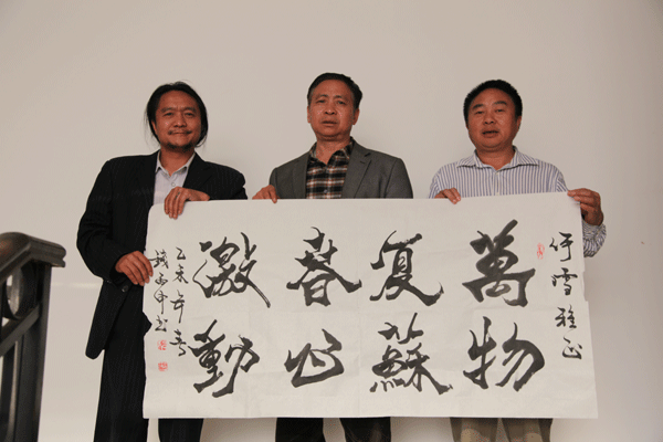 谢晓东表示:这次笔会的特殊氛围也能创造出别出新意的作品,笔会的现场气氛和时间约束对于书画家们是一种考验,能否在这样一种公开的场合,较短的时间内完成作品的确是比较困难的,为什么笔会又能在新的形势下应运而生,为人们喜闻乐见,而又每有佳作问世呢?这主要得利于中国书画工具材料,表现技法的创造构思的特殊性,实质上也恰好体现了中国书画这一艺术门类的优越性,笔会作品以书法和写意画为主,中国书画历来主张“意在笔先,神在法外”重视作品的气韵。艺术家们经过长期的磨练,打下了扎实的功底,即兴地泼墨挥毫实际上是“胸有成竹”和“胸中自有仁壑”的长期积累。因而一幅作品能够在短时间内一气呵成,艺术创作既要有理性的思维,又要有感性的激发。中国书画家常能凭借不同的心态、环境而创作出抒发自己心臆的作品,所以古人留下了“喜气画兰,悲气画竹”之类的经验,留下了“颠张醉李”进行书法创作的典故,从杜甫诗中可以看到诗人“李白斗酒诗百篇”的飘然洒脱,也可淡到“张旭三杯草圣传,脱帽露顶王公前,挥毫落纸如云烟”的饱满激情,东晋著名笔会兰亭修楔王羲之藉酒意而作的《兰亭序》,如神来之笔,其洒落风神不复再得。现代笔会中的书画家在临场挥毫中常有笔墨超出法外之得,这与创作环境的改变有重要关系,笔会中画家们联袂合作的大幅作品成为表现中国画魅力的的崭新形式;书画家们齐聚案前,相互推敲,匠心独运,配合默契之作新颖别致,妙趣横生,书画家精湛娴熟的笔法和气韵生动的佳作,如和煦的春风滋润着在场的每一位观众。