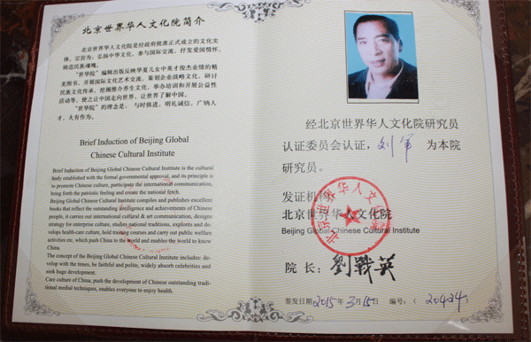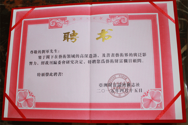 刘军,1952年生于山东,毕业于山东工艺美术学院,为慕凌飞嫡传弟子,现为中国美协会员,资深美术编辑。个人传略被收入《中国当代美术家名人录》、《中国美术家协会会员辞典》等。2015年3月15日经北京世界华人文化院(简称“世华院”)研究员认证委员会认证,为本院研究员。