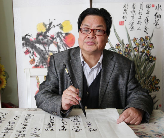 张地君自幼酷爱书画创作,数十年如一日利用业余时间刻苦研习篆、隶、楷、行、草、魏碑等书法艺术及中国水墨画。一边当医生为患者解除痛苦,一边拿起毛笔练字作画,长期坚持、孜孜不倦。工作之余,他的大部分时间都用在了艺术创作上,几乎每天都坚持创作,尤其是当他三十年前得了癌症之后,更是抓紧一切时间创作,经常凌晨4点多就起床练字作画,他希望在有生之年能为后人多留下一些作品。正是由于他的专注和持之以恒,使得他在医学上和艺术上都获得双丰收。