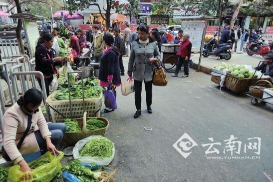 篆新农贸市场算得上是昆明最“牛”的菜市场,每天吸引了几万人进市场购物消费。上月底,创卫复检期间,市场内人流如织,而环境卫生却异常良好,门口没有占道经营,条条通道干净畅通,地上见不到一片菜叶纸屑。不少市民把干净整洁的篆新农贸市场晒到了朋友圈,直言“咱家菜场好吃又好看”。