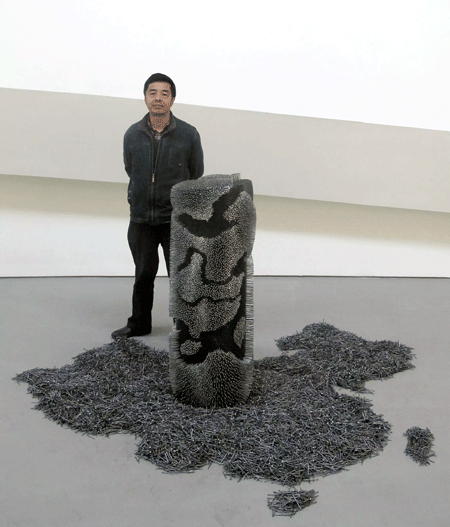 宋坚和他曾获得第十三届亚洲艺术节优秀作品奖的作品《中国山河》