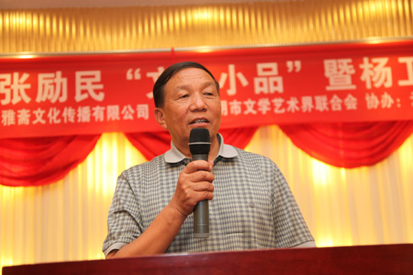 昆明市政协副主席、云南长城书画院顾问汪叶菊女士发表讲话,对张励民先生和杨卫国先生的作品表示认可和肯定,张励民是书、画、诗三杰。云南书画院研究员、省楹联学会副会长韩先成对这次展览作了热情洋溢的发言。张励民先生对自己的作品和成就作了回顾和讲解。云南省人民政府参事、云南长城书画院顾问李森宣布展览开幕。本次展览规模宏大,气氛热烈。